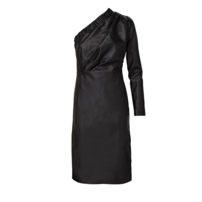 The Dodo Bar OR Gorgiee dress is crafted from 100% leather and features a one-shoulder design with elasticated crinkled details at the top.