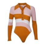 The Dodo Bar Or Hera Bodysuit is crafted from ribbed knit, ensuring a snug fit with a point collar and front button accents.