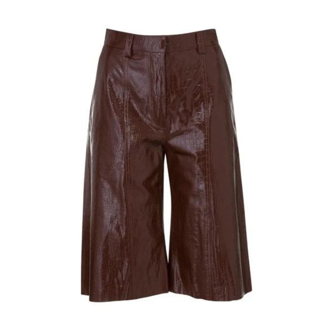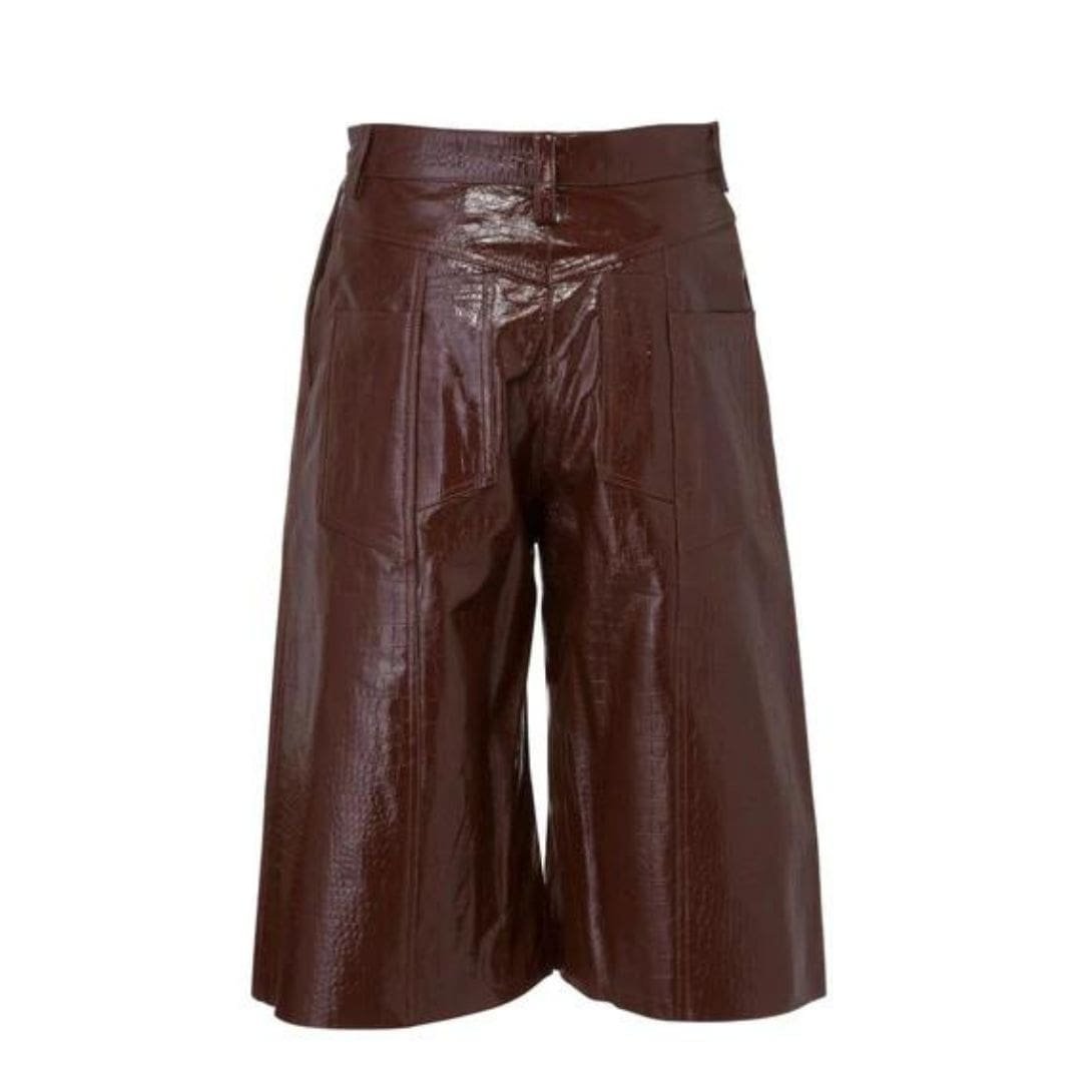 Dodo Bar or Ivgenya Bermuda is made from leather, featuring a Bermuda-style silhouette. It has a low-rise waist and a loose fit through the legs.