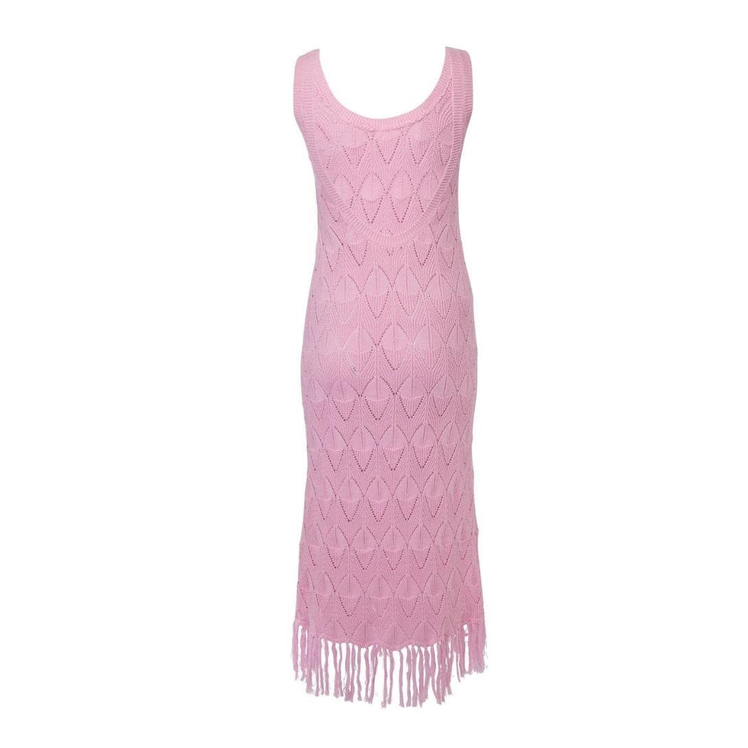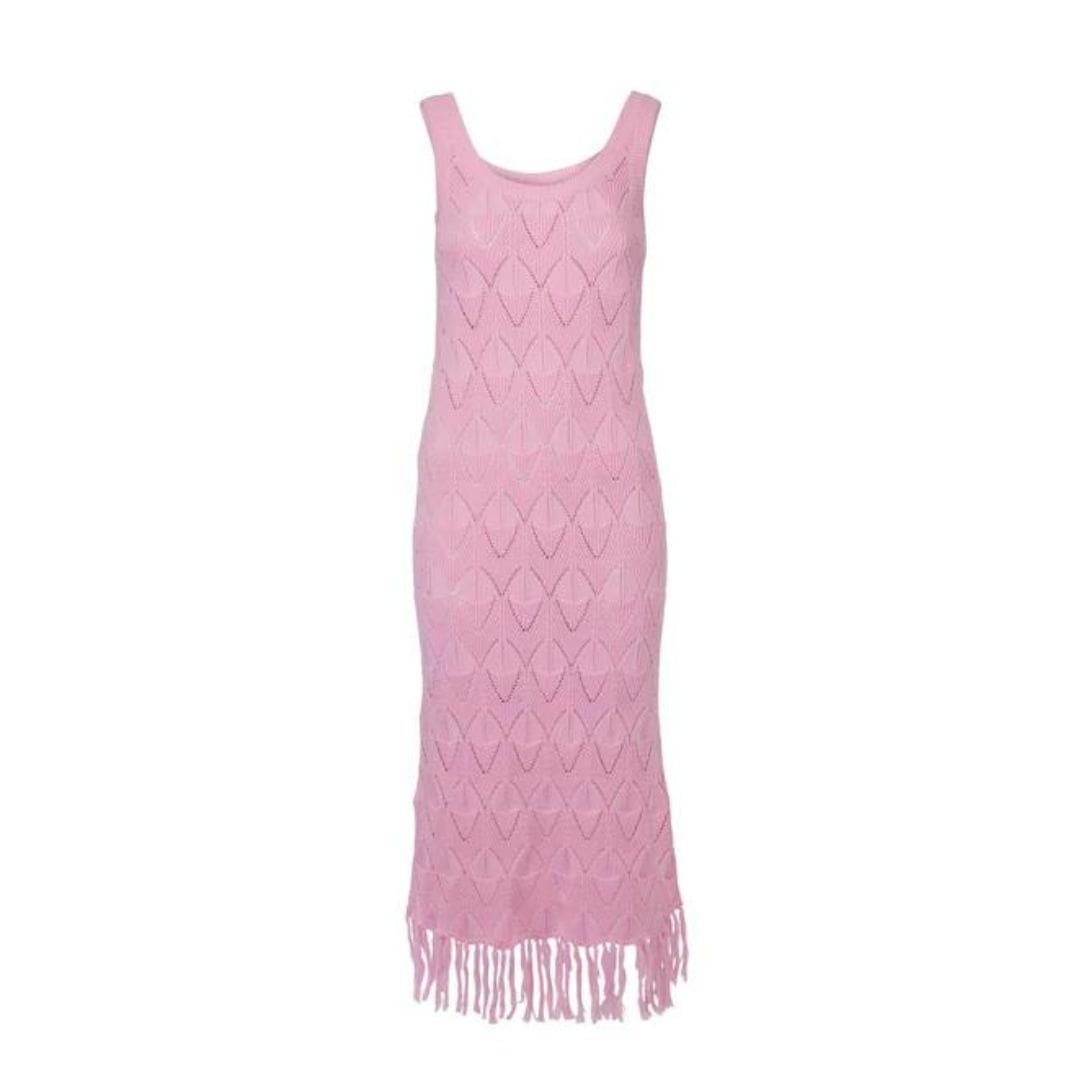 The Dodo Bar OR Joe Dress is expertly crafted from pointelle pattern knitting, featuring a round neck and finished with fringed hem details.