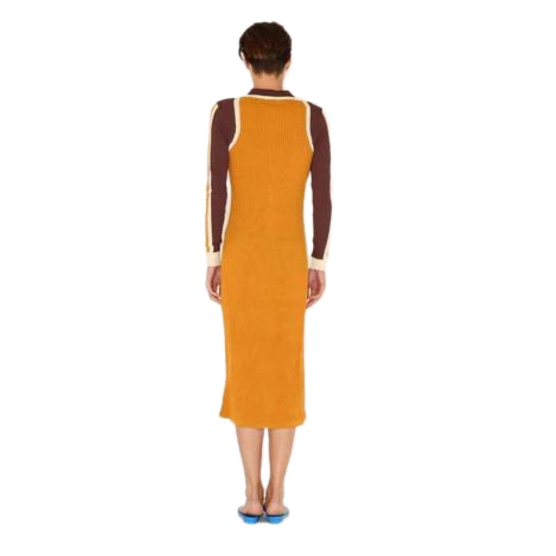 The Dodo Bar OR Kelly Dress’ is crafted from ribbed knit, designed with a relaxed fit featuring a point collar and front button fastening.