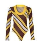 The dodo bar or Summer Bodysuit’ offers a snug fit with a stylish round neckline and a diagonal-striped pattern.