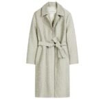 Securing the front of the coat is a front tie closure, adding an element of elegance and sophistication to the design. This tie closure allows for versatile styling options, whether worn loosely for a casual look or tied tightly for added warmth and structure.