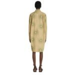 A defining feature of this dress is its sun embellishment, meticulously adorned to add a touch of whimsy and artistic expression. The sun motif is intricately detailed and thoughtfully integrated into the fabric, creating a focal point that captures attention and elevates the dress’s overall aesthetic. This embellishment reflects Dries Van Noten’s dedication to combining craftsmanship with creative design elements.