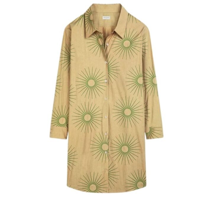 Overall, the Dries Van Noten loose-fit shirt dress in cotton with sun embellishment embodies modern sophistication and artistic expression. Elevate your wardrobe with this versatile piece that promises comfort, style, and effortless elegance for every occasion.