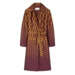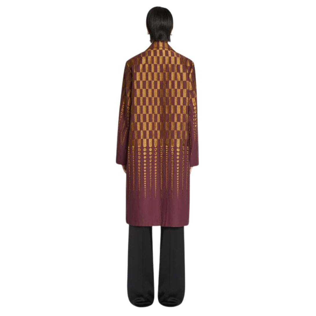 In summary, the Dries Van Noten Embroidered Cotton Coat in Wine is a timeless outerwear piece that combines luxurious materials, intricate detailing, and functional design elements. Its graphic embroidery, flattering fit, and versatile styling options make it a standout addition to any wardrobe, perfect for adding a touch of effortless sophistication to your look.