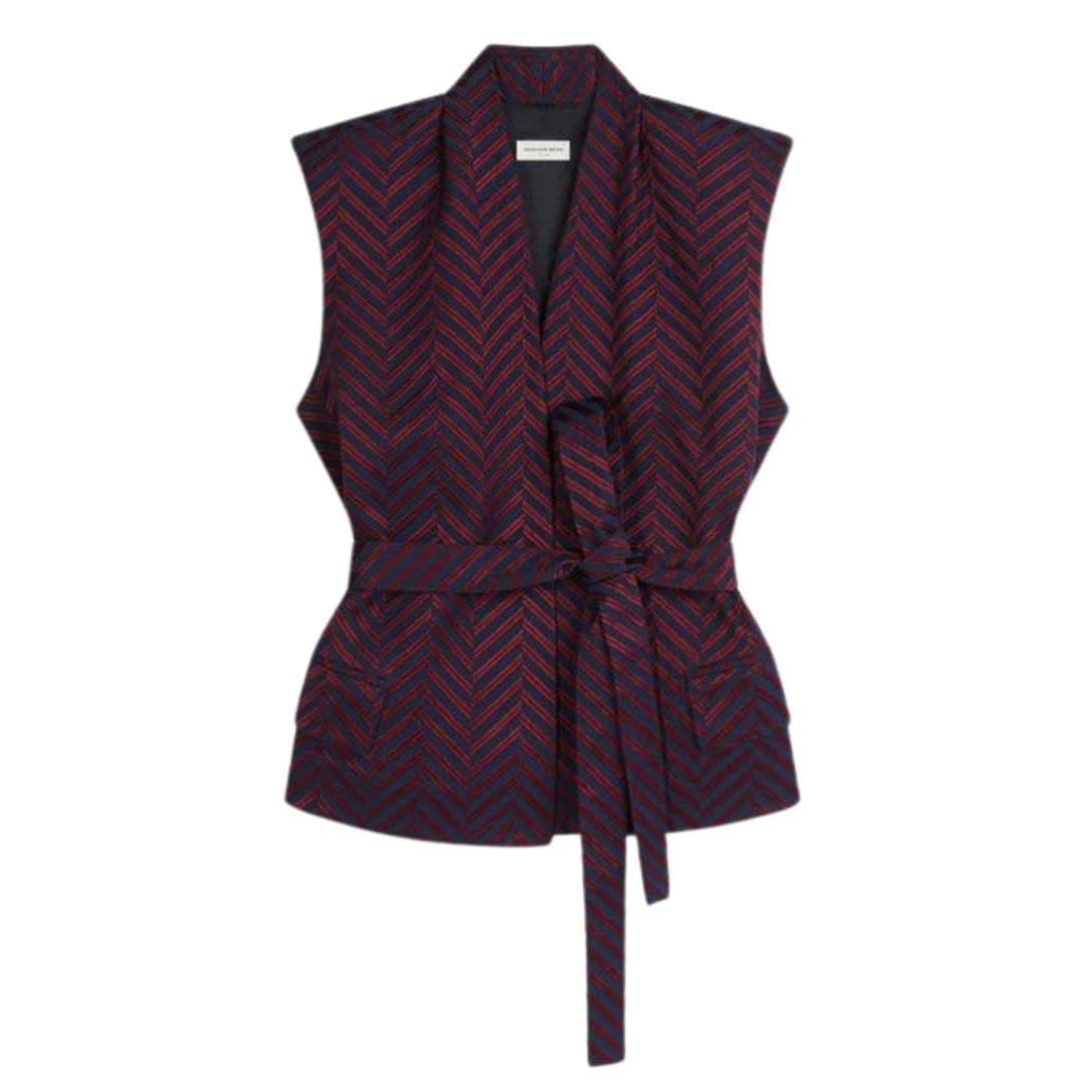 Pair it with tailored trousers and a blouse for a chic office-ready ensemble, or layer it over a simple tee and jeans for a sophisticated yet laid-back weekend look. However you choose to style it, the Dries Van Noten Bicolor Chevron Pattern Vest promises to elevate your outfit with its understated elegance and undeniable charm.