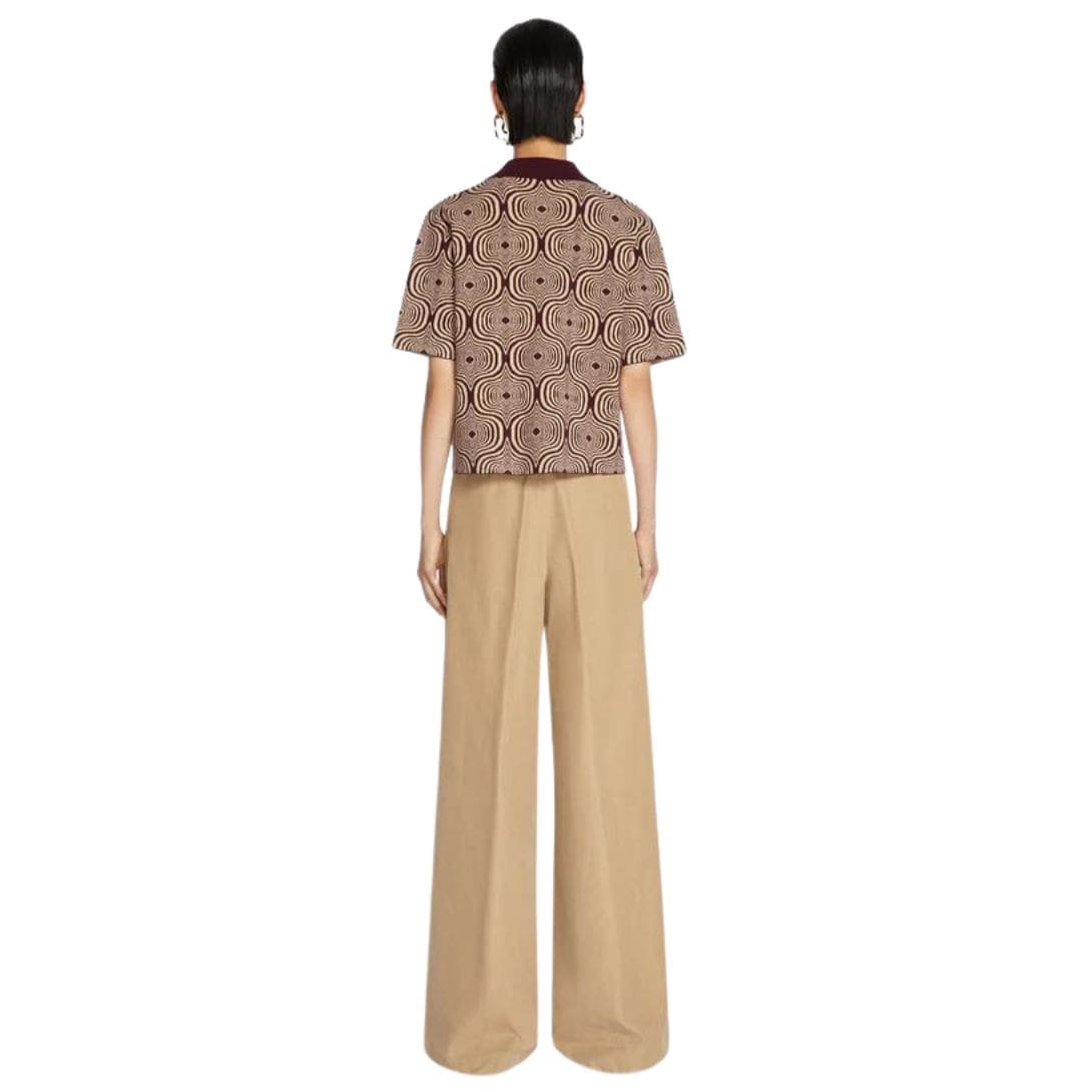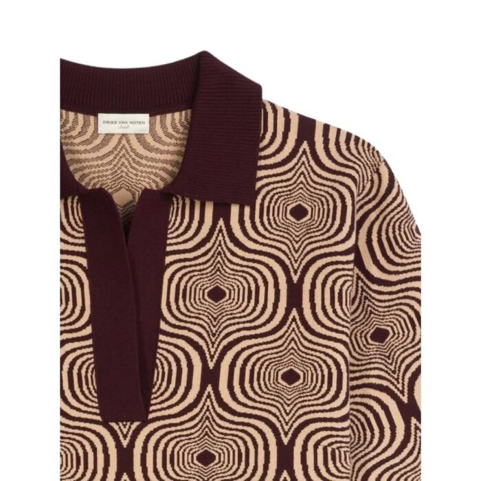 The Dries Van Noten Knitted Polo Shirt features a striking bicolour graphic jacquard pattern that adds a modern and artistic touch to the design. This intricate motif showcases Dries Van Noten’s commitment to high fashion and attention to detail. The shirt has a regular fit, offering a comfortable and flattering silhouette for various body types.