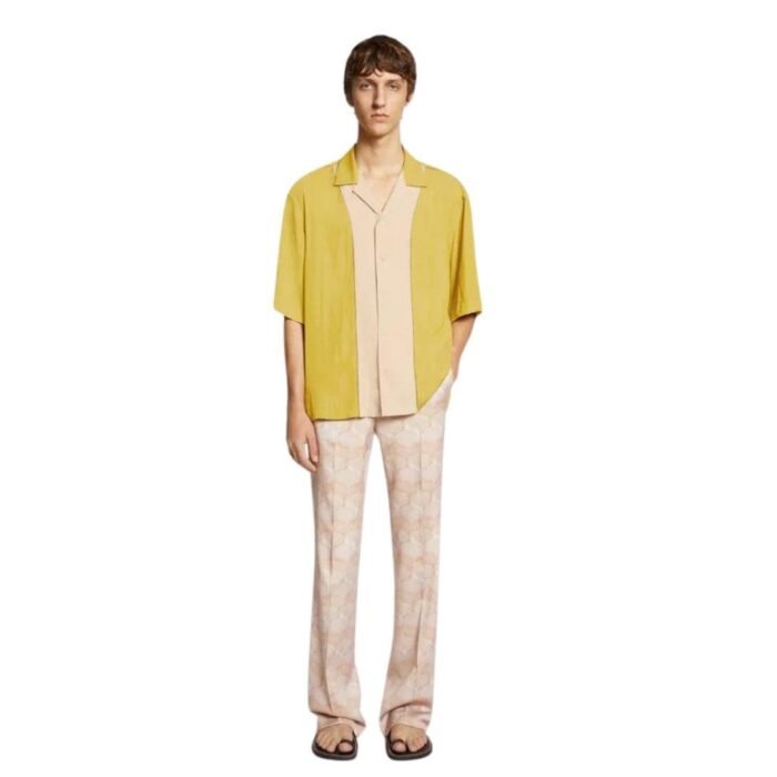 Unveil a touch of understated luxury with the Dries Van Noten Ladderstitch Shirt. This contemporary shirt features a relaxed silhouette crafted from 100% polyester, offering a smooth drape and easy care.The defining detail lies in the intricate ladderstitch embroidery, a subtle yet stylish embellishment that elevates the design. Offered in a loose fit with short sleeves and a classic front button closure, this shirt ensures both comfort and a modern aesthetic.