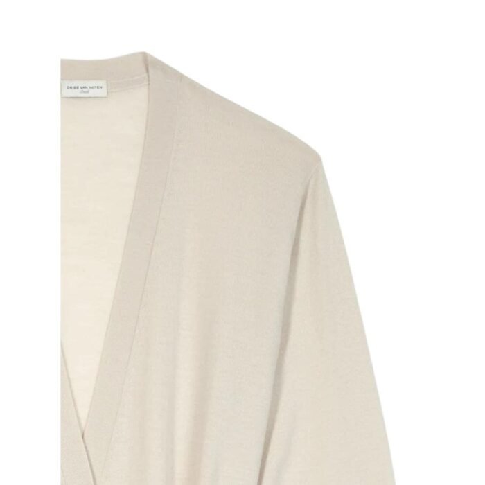 DRIES VAN NOTEN LONG MERINO CARDIGAN ECRU