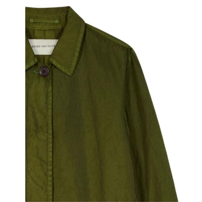 Discover the epitome of functional luxury with the Dries Van Noten Loose Fit Mac Green, a masterpiece of craftsmanship and innovation. Crafted from 100% nylon, this garment combines durability with style, offering a versatile outerwear option for all occasions.