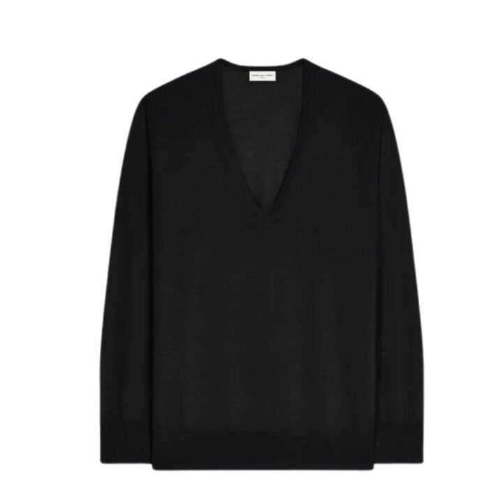 Dries Van Noten merino wool sweater Black. crafted from 100% premium merino wool, is a luxurious addition to your wardrobe. With its loose fit and stylish V-neckline, this sweater offers both comfort and elegance. To ensure its longevity and maintain its pristine condition, follow this comprehensive care guide.