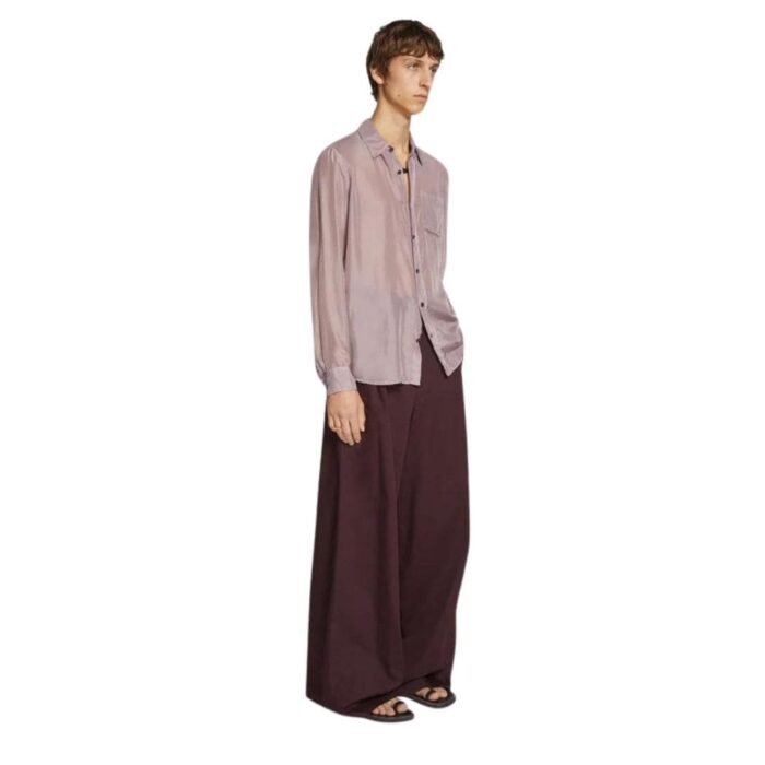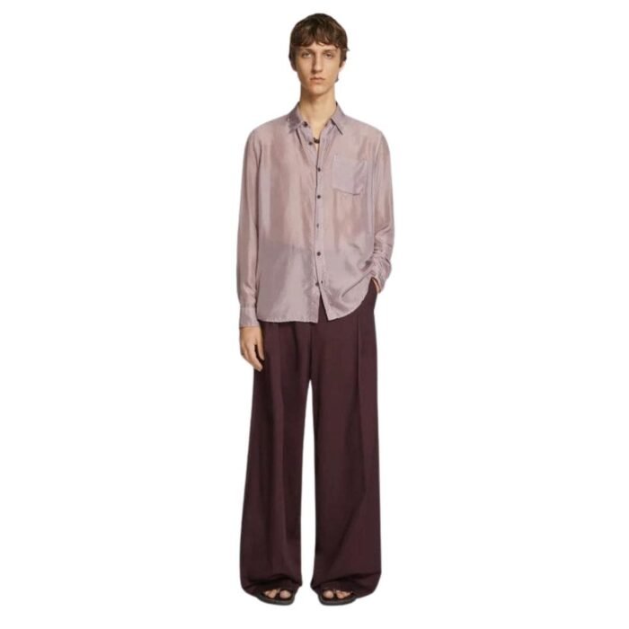 Unveil a touch of understated luxury with the Dries Van Noten Overdyed Silk Shirt, is a luxurious and distinctive addition to any wardrobe. Crafted from premium silk fabric, this shirt boasts a unique overdyed finish that gives it a rich depth of color and a subtly textured appearance. Its tailored silhouette offers a sleek and sophisticated fit, making it suitable for both formal and casual occasions. Featuring buttoned cuffs and a hidden front button closure, this shirt combines style with functionality. Whether dressed up with trousers or paired with jeans for a more relaxed look, the DRIES VAN NOTEN Overdyed Silk Shirt effortlessly adds a touch of elegance and refinement to any ensemble.