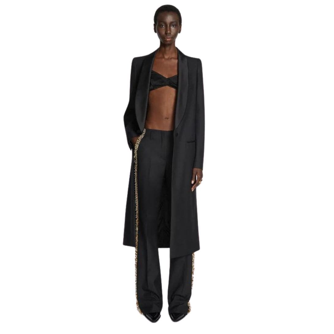 Refined yet versatile, the Dries Van Noten Tuxedo Coat in Black is a wardrobe essential that transcends seasons and trends. Its timeless appeal ensures it remains a staple piece in your collection for years to come, effortlessly elevating any ensemble with its understated elegance.