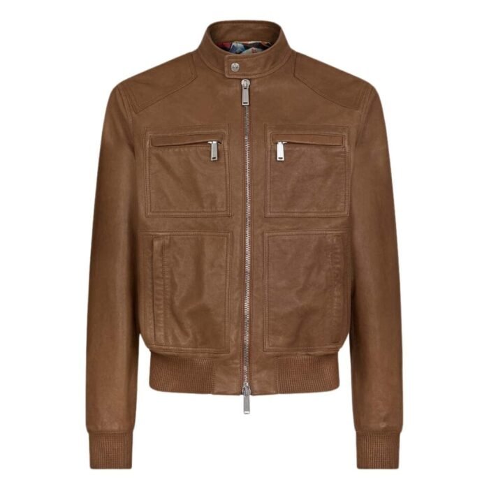 At first glance, the jacket commands attention with its sleek silhouette and luxurious finish. Made from premium, supple leather, it boasts a buttery-smooth texture that molds to the body, offering both comfort and style. The rich, deep hues of the leather, whether classic black or rich cognac, lend an air of opulence, while subtle distressing or unique treatments add a touch of rugged charm.