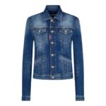 Constructed from premium denim fabric, the jacket boasts a medium clean wash finish, lending it a classic yet contemporary appeal. The wash enhances the natural texture of the denim, creating subtle variations in color and tone, while maintaining a refined, polished look. The medium wash imbues the jacket with a sense of casual sophistication, making it suitable for a range of occasions, from laid-back weekends to evening outings.