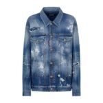 The DSquared2 Medium Ice Spots Wash Over Jeans Jacket encapsulates the essence of contemporary urban style with a distinctively daring edge. Crafted by the renowned Canadian design duo, Dean and Dan Caten, this jacket represents a fusion of streetwear influences and high fashion craftsmanship.