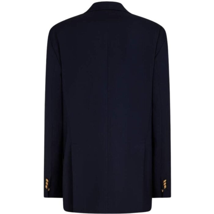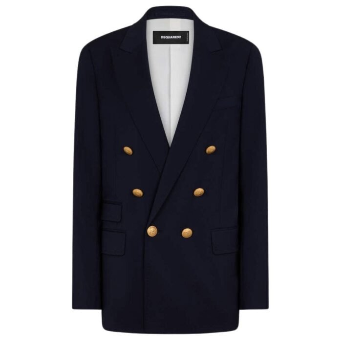 A standout feature of this blazer is its versatility and attention to detail. The interior is as thoughtfully designed as the exterior, often featuring a luxurious lining with intricate patterns or branding elements. Additional details like peak lapels, multiple pockets, and subtle stitching accents further elevate the design, showcasing DSQUARED2’s commitment to craftsmanship and style.