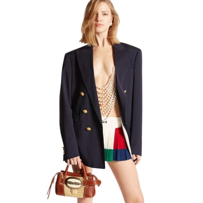 The DSQUARED2 Palm Beach D.B. Blazer is a striking piece that blends luxury and contemporary style, epitomizing the brand’s unique fashion ethos. Crafted with meticulous attention to detail, this double-breasted blazer exudes sophistication and modern flair. The blazer is designed to be a statement piece in any wardrobe, combining classic tailoring with bold, innovative elements.