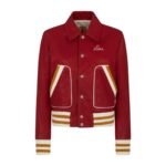 Constructed from premium quality leather, the jacket boasts a supple texture that exudes luxury and durability. The leather’s rich, buttery-smooth finish adds a touch of sophistication, making it a versatile piece that effortlessly transitions from casual outings to more formal occasions. The classic varsity-inspired design is enhanced by contrasting ribbed knit trimmings at the collar, cuffs, and hem, which not only provide a snug fit but also accentuate the jacket’s athletic silhouette.