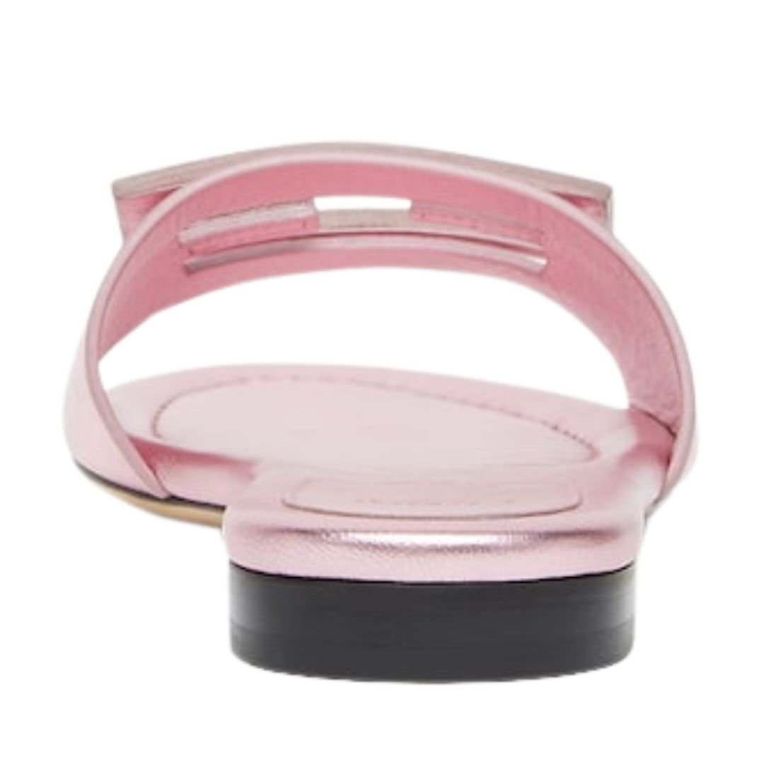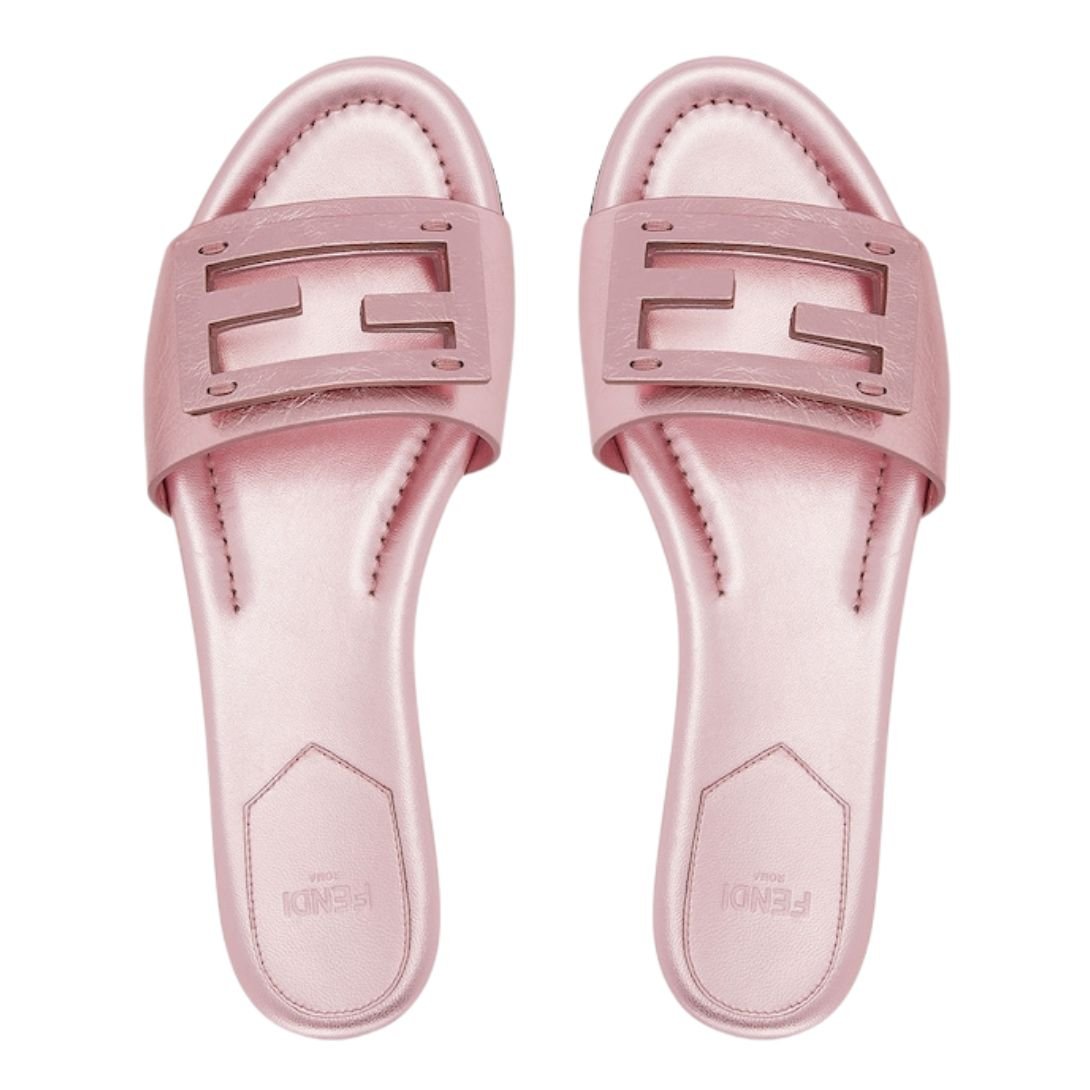 FENDI BAGUETTE MAUVE METALLIC LEATHER SLIDES