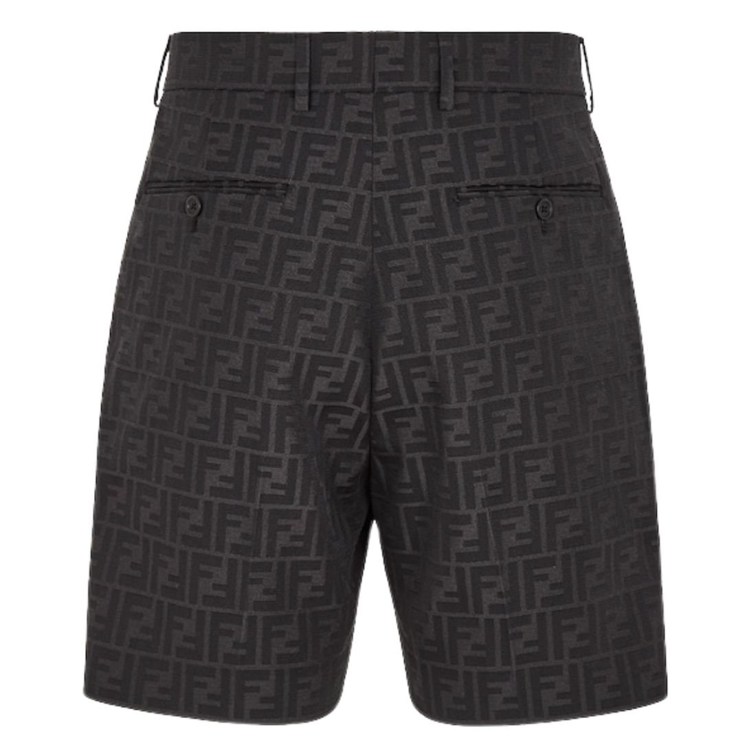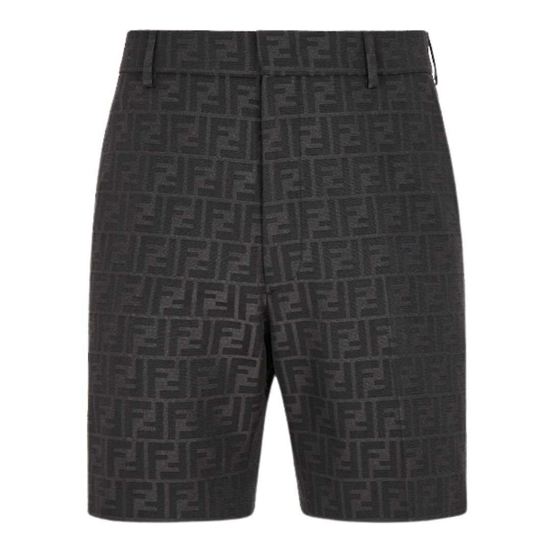 Pair these black jacquard FF Bermudas with a simple, high-quality T-shirt or button-down shirt in neutral tones like white, gray, or beige to keep the focus on the pattern. For footwear, loafers or high-end sneakers would complement the look. A sleek jacket or blazer can further elevate this ensemble, making it suitable for a range of casual and semi-formal occasions.