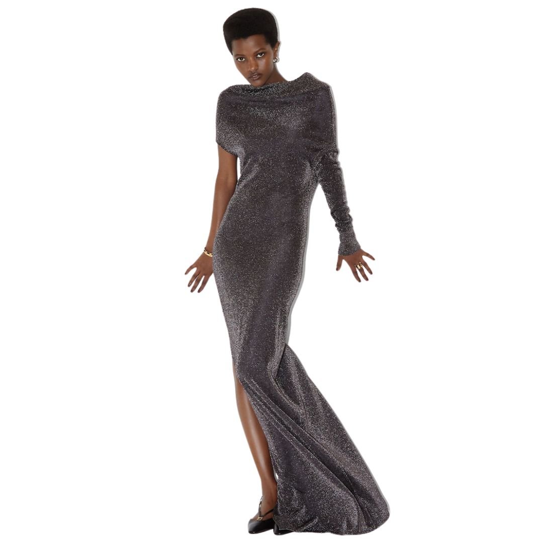 - One-Shoulder Design: The asymmetrical one-shoulder cut adds a dramatic, contemporary touch, perfect for high-fashion occasions.