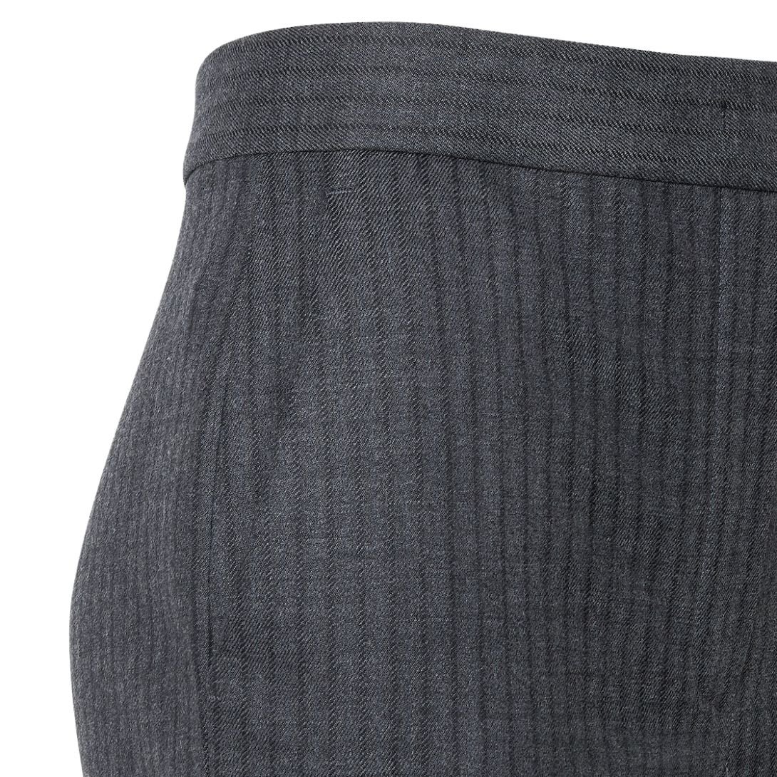 The concealed zipper and hook closure offer a smooth, seamless fastening, ensuring a streamlined fit that enhances the overall sleek look of the trousers.