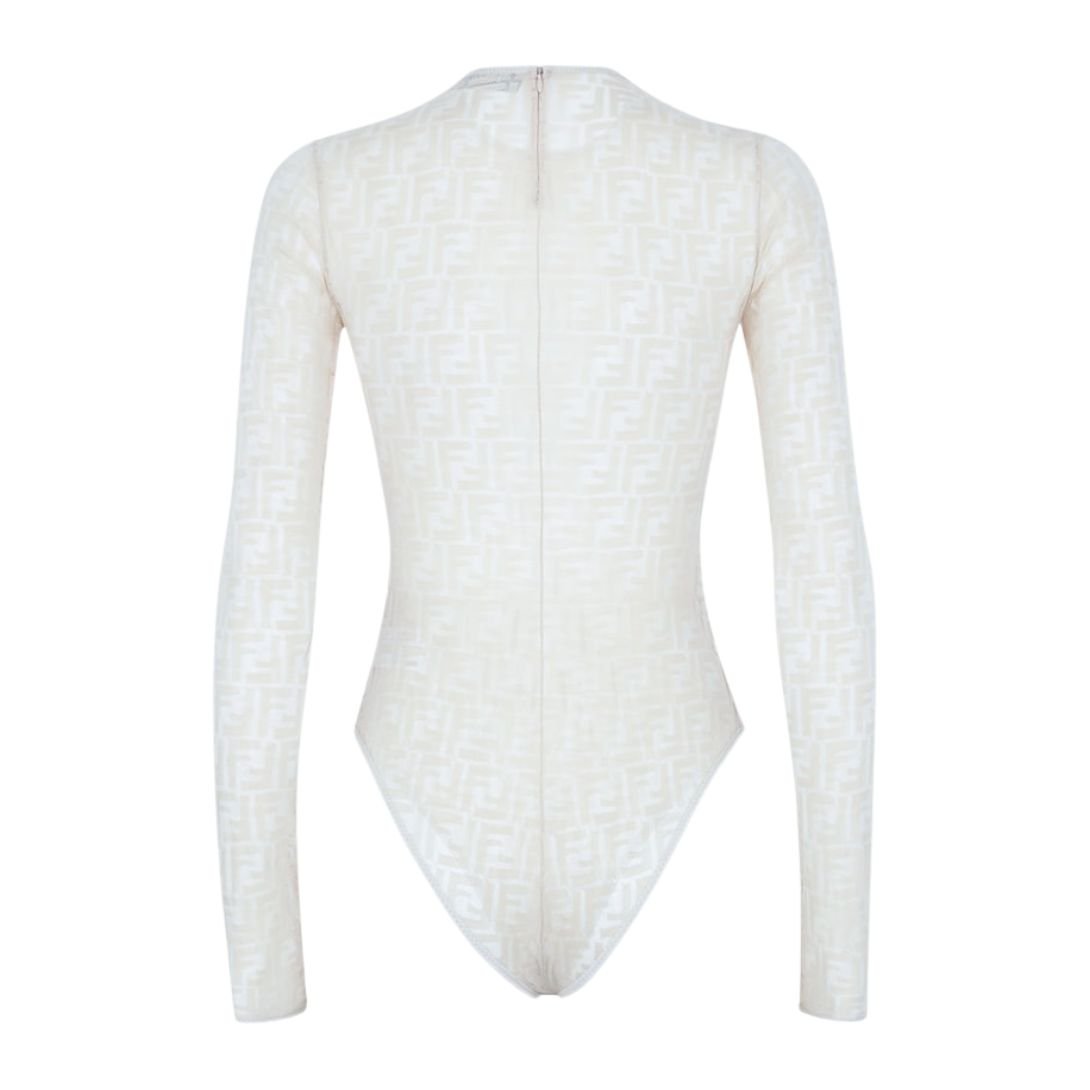 Crafted from delicate lace, the bodysuit is embellished with an all-over white FF motif, adding a luxurious and textured element to the design. This signature detail enhances its elegance and versatility.