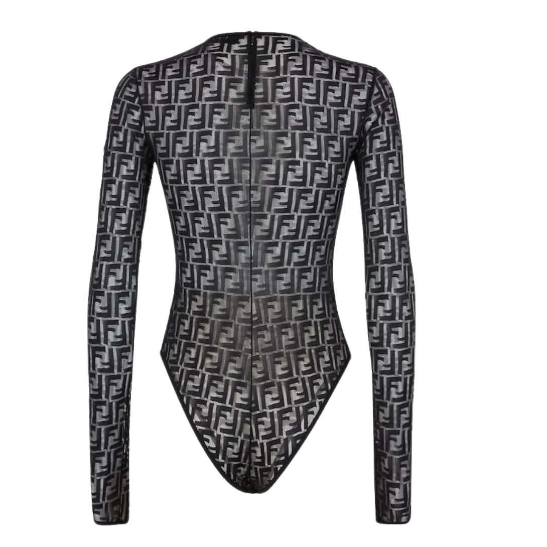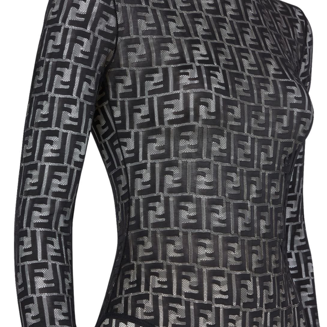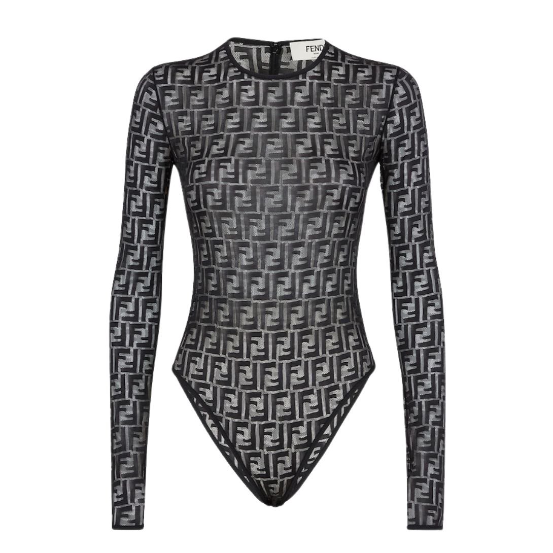 Made from delicate lace, the body is adorned with an all-over black FF motif, adding a sophisticated, textured detail. This design creates a luxurious and bold look, making it a statement piece in any wardrobe.