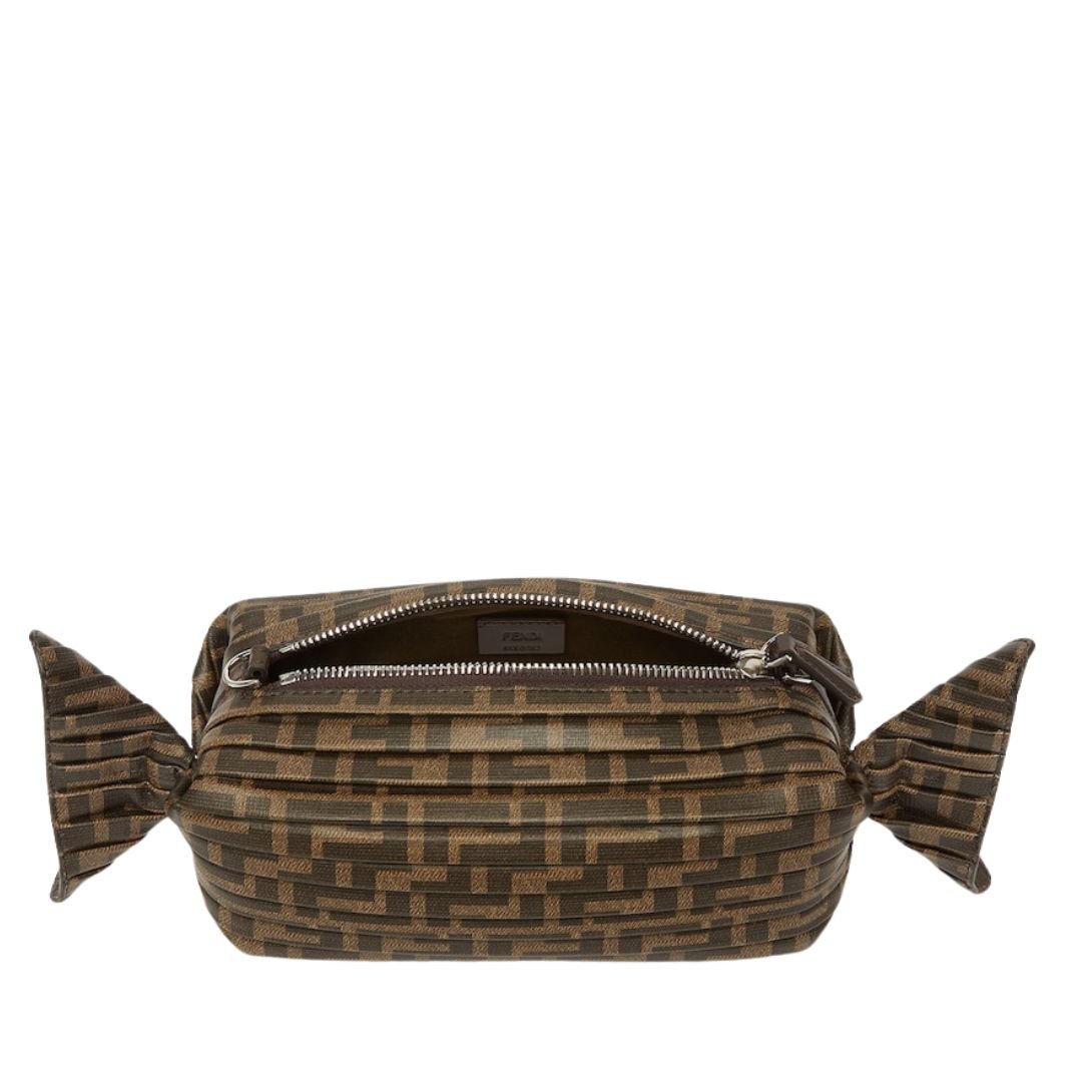 A playful and compact accessory, this candy-shaped mini-bag combines Fendi’s iconic FF motif with a unique, whimsical design. Its compact size and versatile carrying options make it a stylish companion for any occasion.