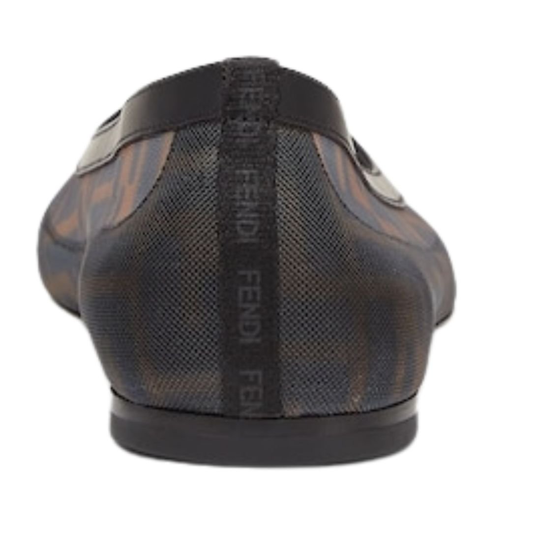 FENDI COLIBRÌ BLACK LEATHER AND BROWN FF MESH BALLET FLATS