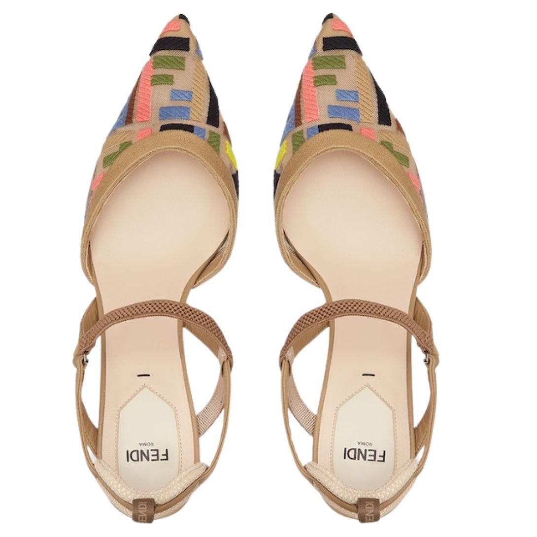 FENDI COLIBRÌ LITE MULTICOLOR FF MESH MEDIUM-HEELED SLINGBACKS