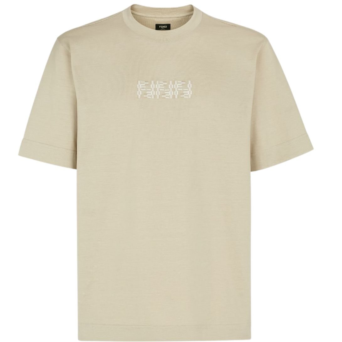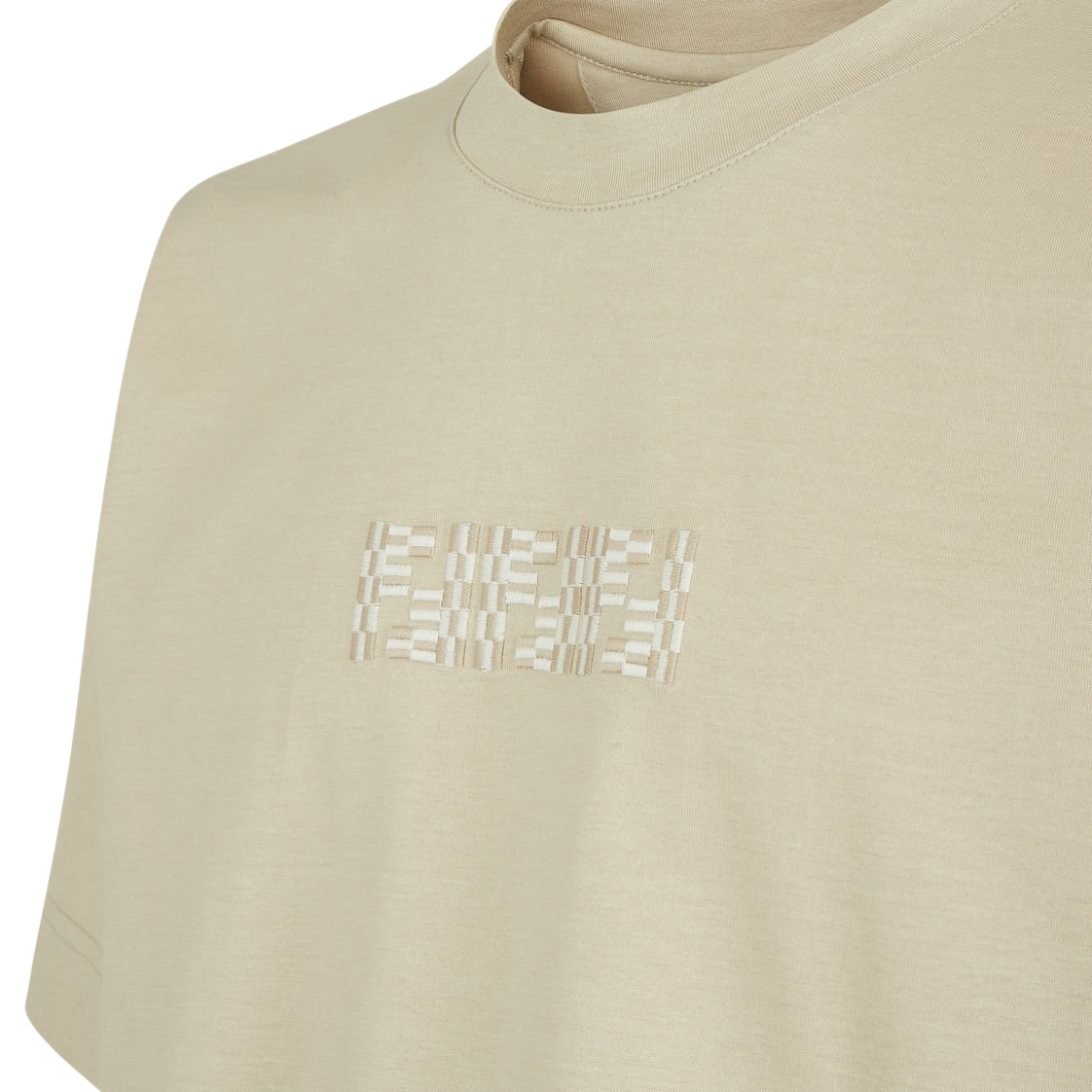 The shirt’s standout feature is the exquisite FF Labyrinth motif, which is meticulously embroidered on the chest. The intricate design, composed of beige and white threads, adds a touch of sophistication to the shirt while maintaining a subtle and refined aesthetic. The embroidery adds a sense of craftsmanship and attention to detail, making this T-shirt a statement piece.