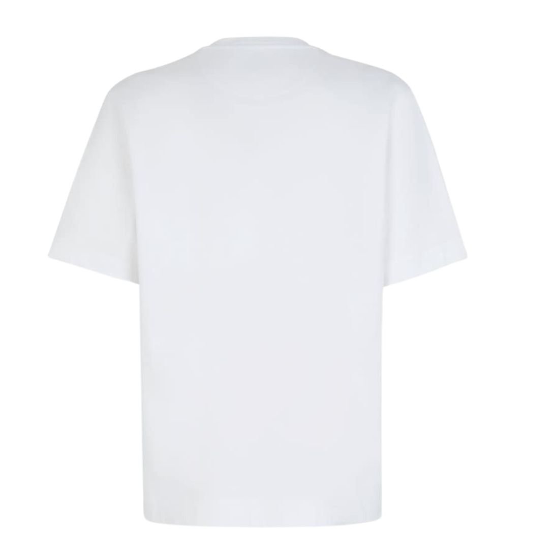 Made from 100% cotton in a crisp white color, this T-shirt ensures a soft and breathable feel throughout the day. The cotton fabric offers durability and comfort, maintaining a clean, fresh look while being easy to care for.
