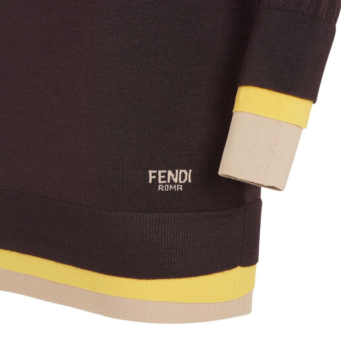 A contrasting Fendi Roma logo intarsia at the hem adds a signature touch to the design, elevating the overall look with a bold, brand-defining statement.