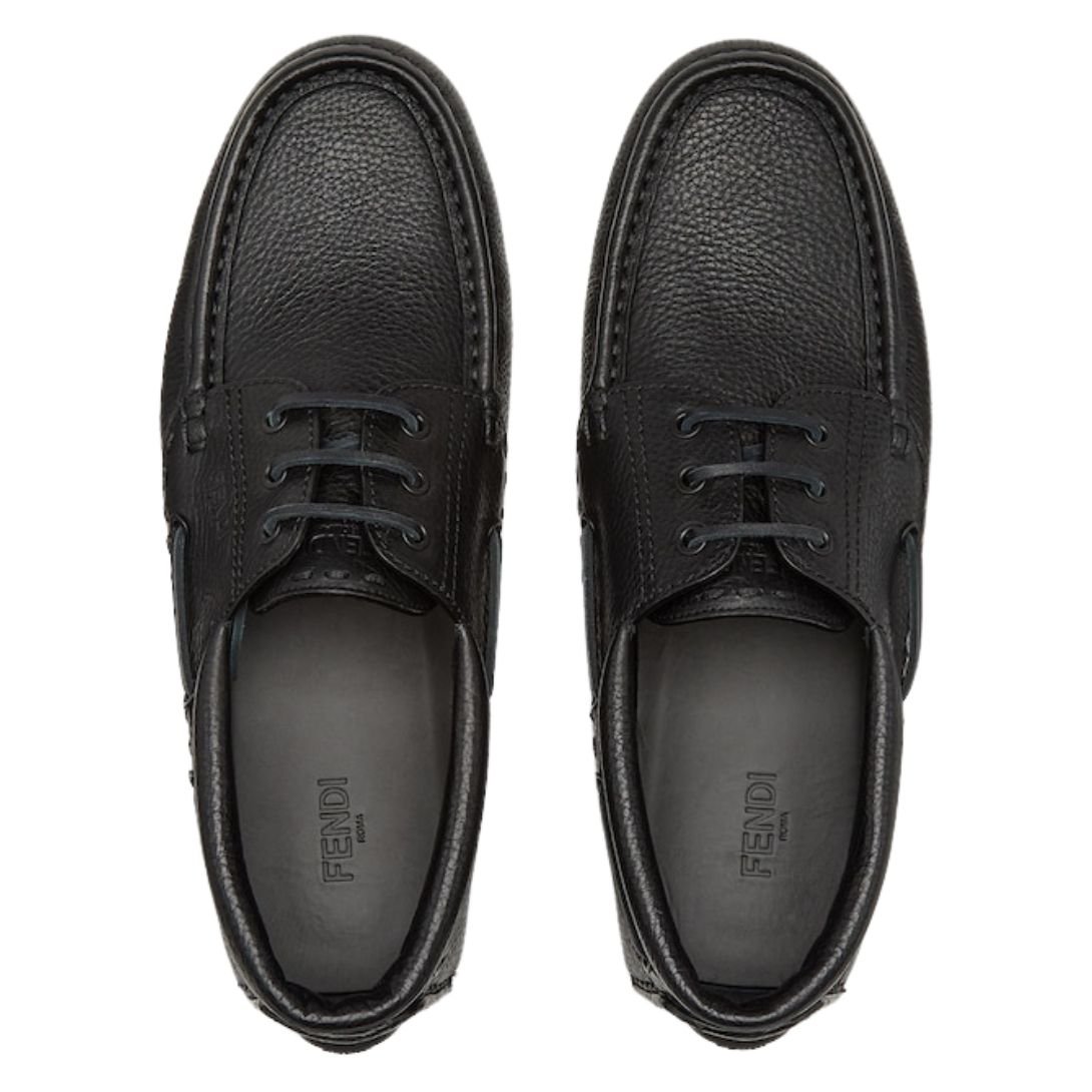 The black injection platform sole is accented with FF detailing and Fendi lettering, providing a contemporary edge to the classic boat shoe silhouette. These distinctive elements showcase Fendi’s signature luxury, elevating the overall design.