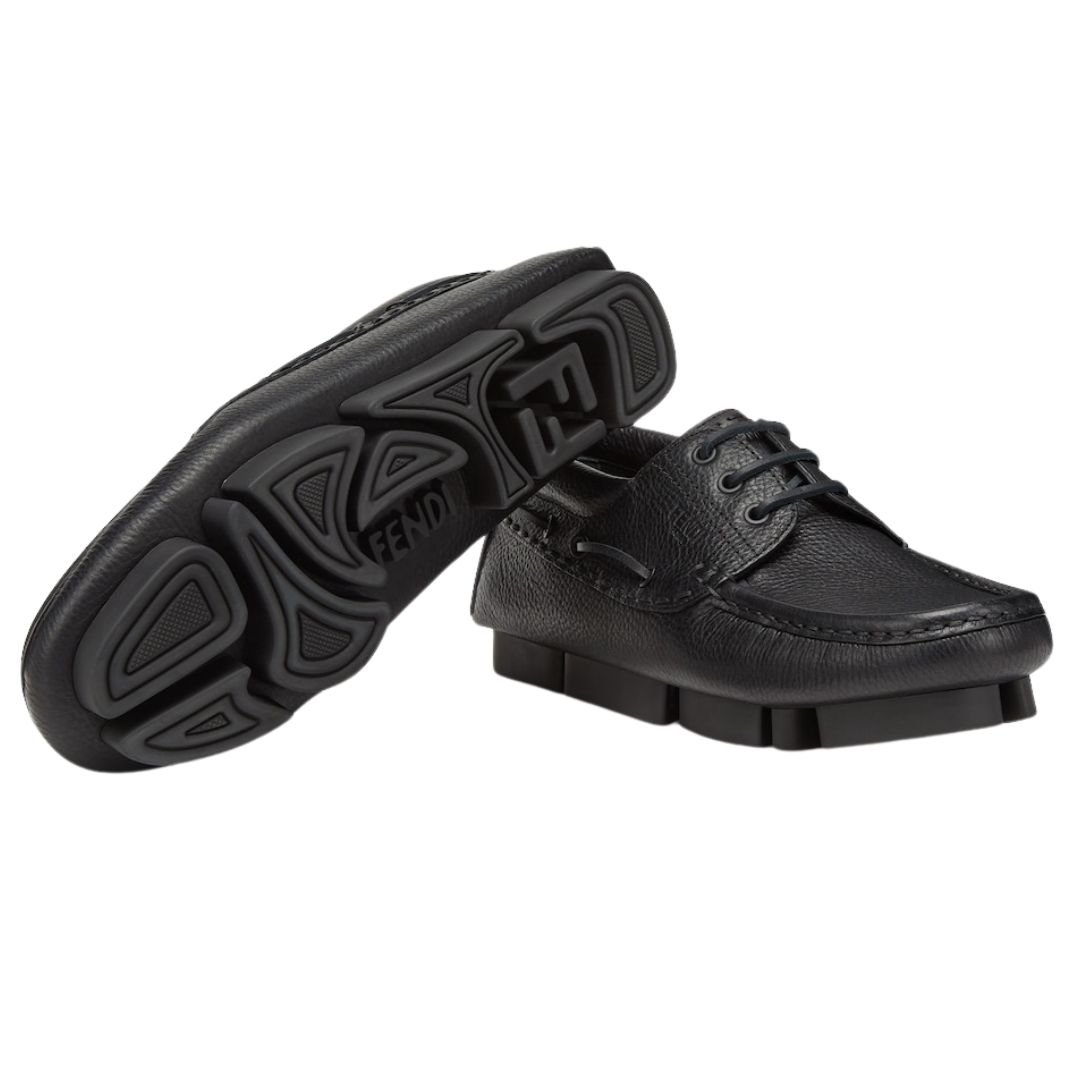 These Fendi boat shoes offer a sophisticated take on a classic nautical style, combining traditional craftsmanship with modern design elements. Made with luxurious materials, they provide both style and comfort, perfect for a refined yet relaxed look.
