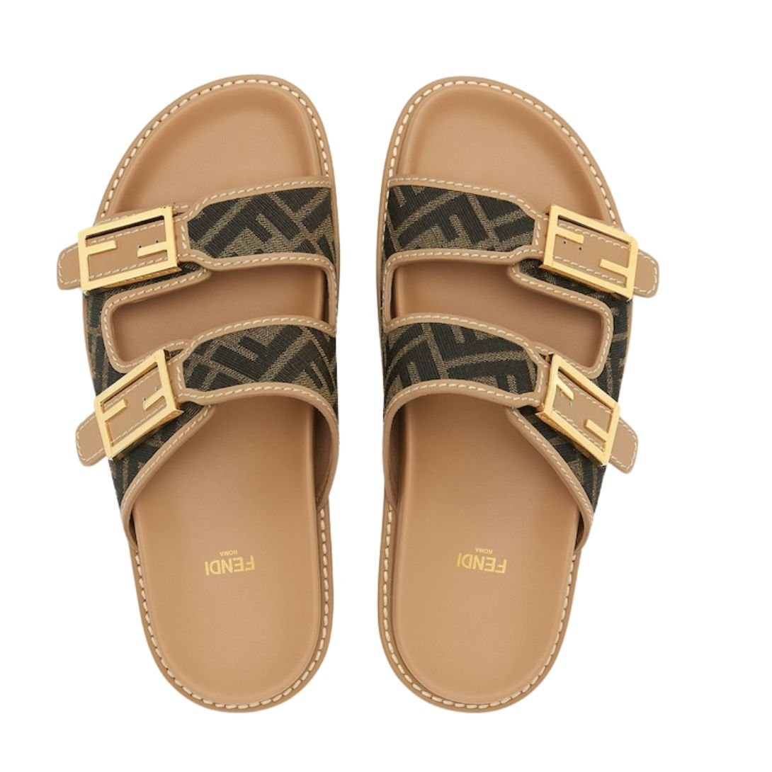 FENDI FEEL BROWN FF FABRIC SLIDES