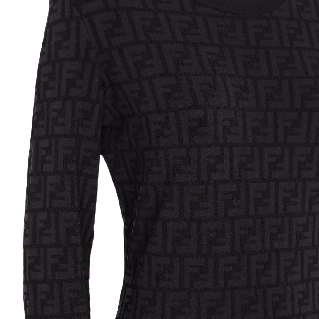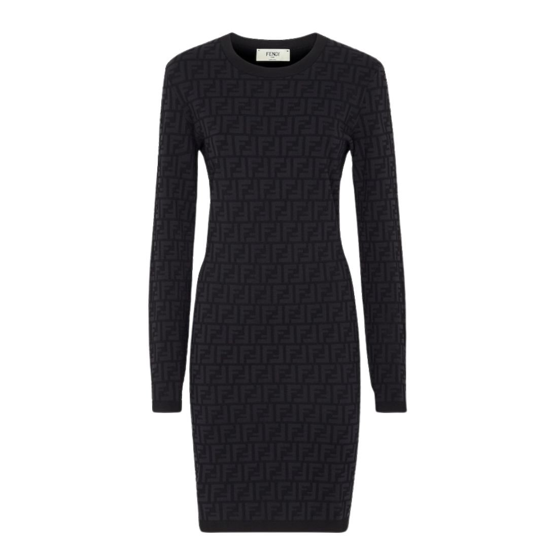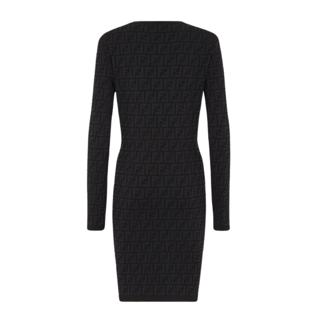 Crafted from viscose knit, the dress showcases an embossed all-over FF motif in black. This iconic pattern adds texture and depth to the design, embodying a sophisticated and modern aesthetic.