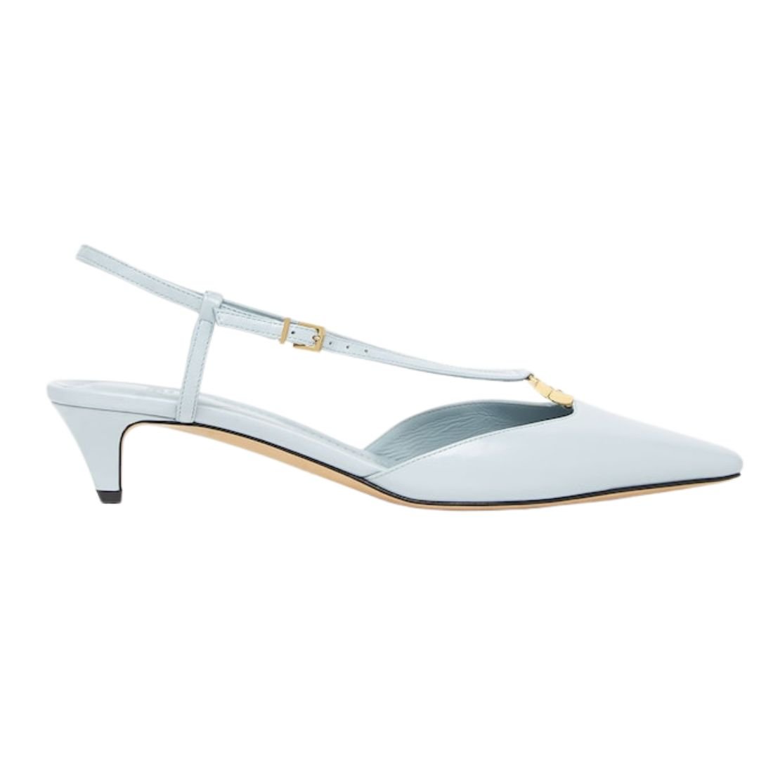 These light blue slingbacks offer a contemporary take on timeless elegance. With a square-toe design and sleek straps that wrap around the foot, they deliver both sophistication and comfort.