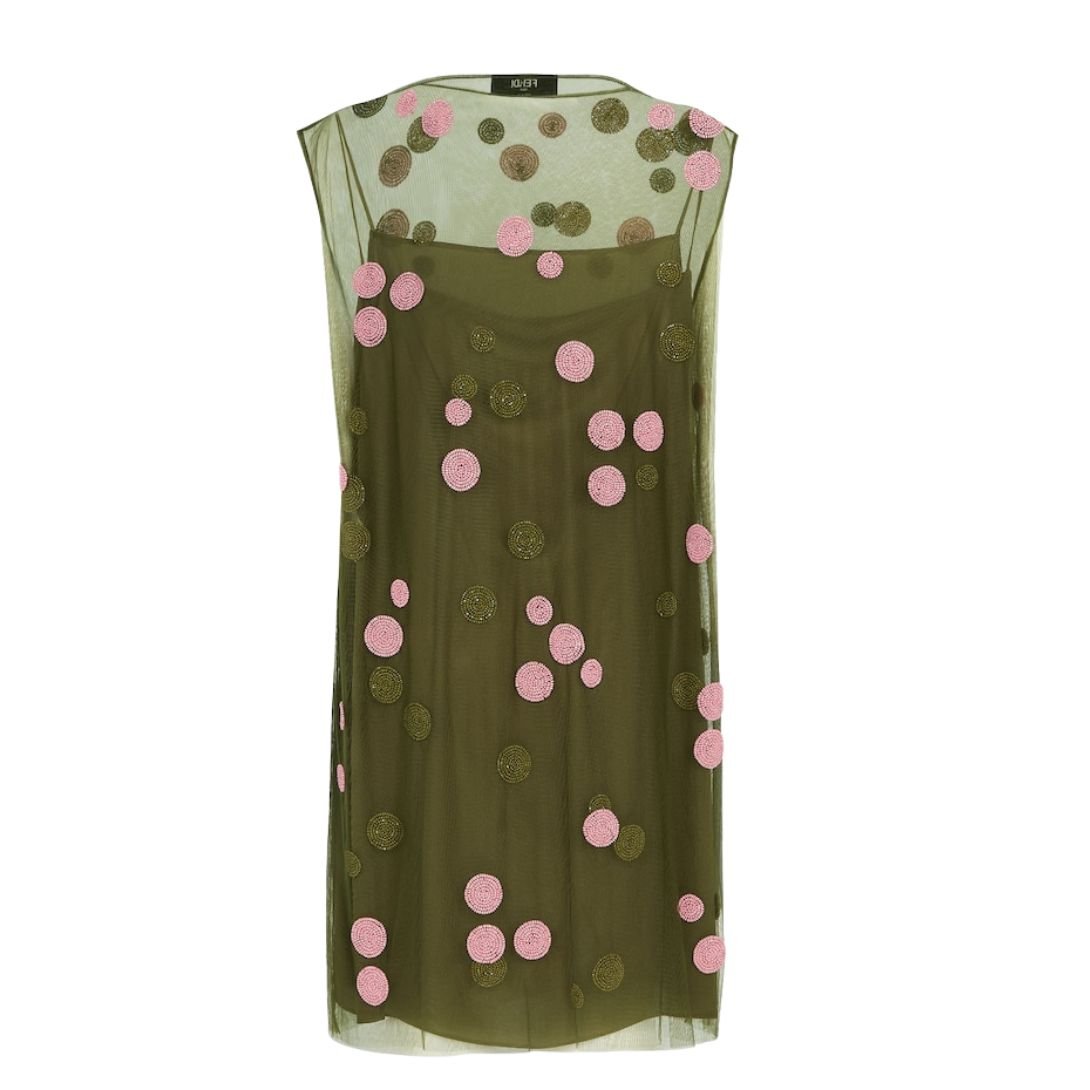 FENDI GREEN EMBROIDERED TULLE DRESS