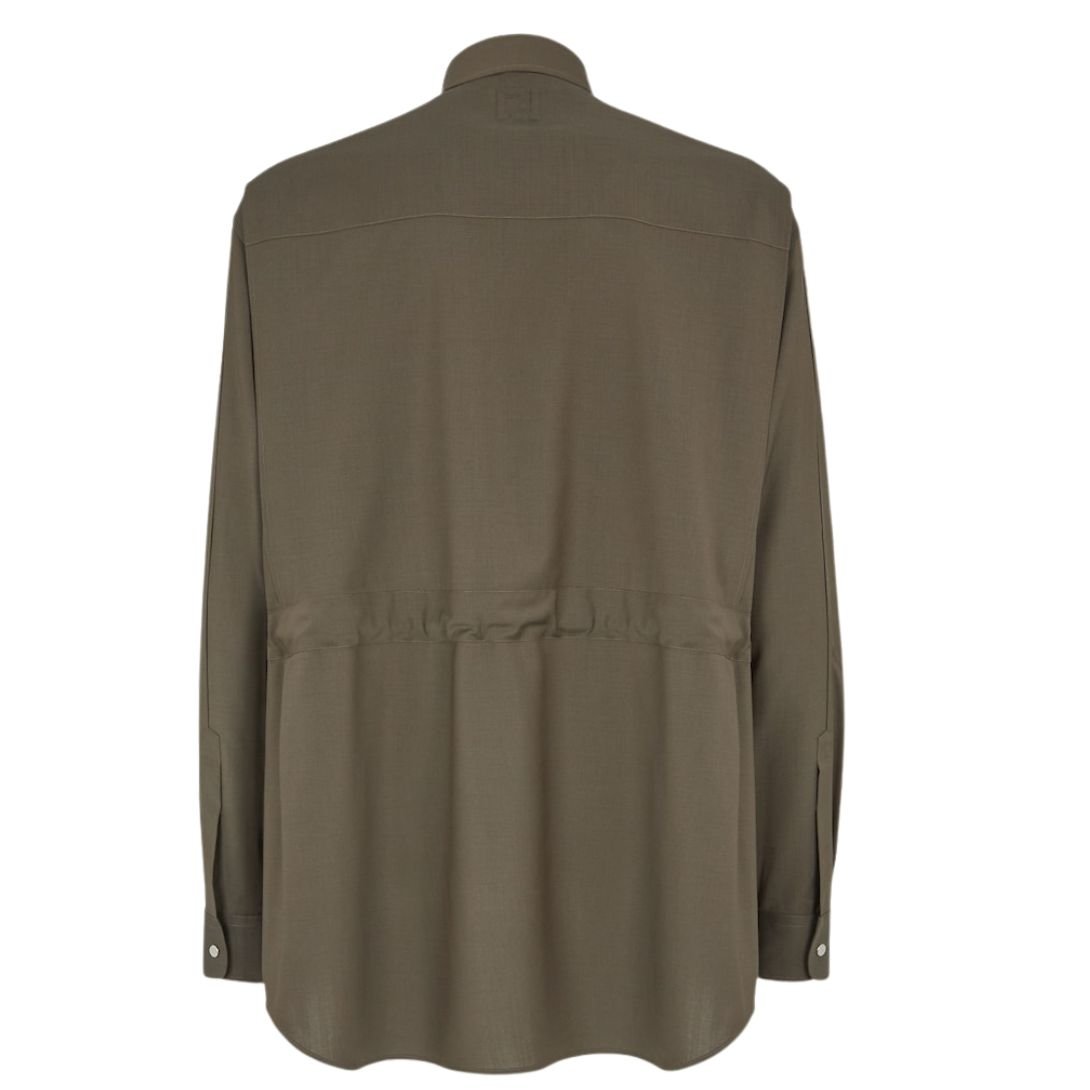 This oversized blouson features a relaxed fit and is designed with an internal drawstring at the back waist for a customizable shape. The shirt collar and long sleeves with dropped shoulders contribute to its laid-back yet stylish look.