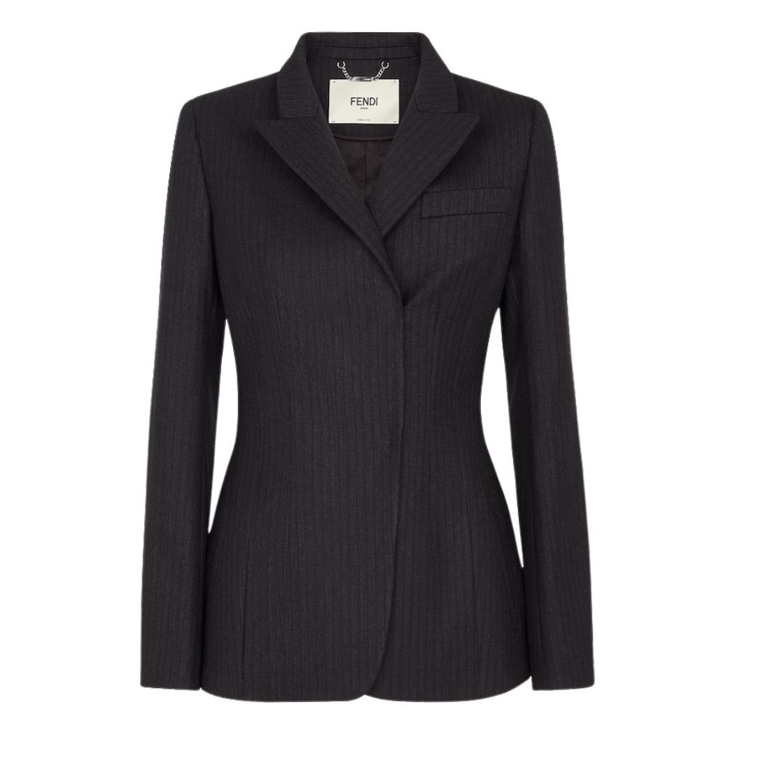 FENDI JACKET BLACK PINSTRIPED WOOL BLAZER