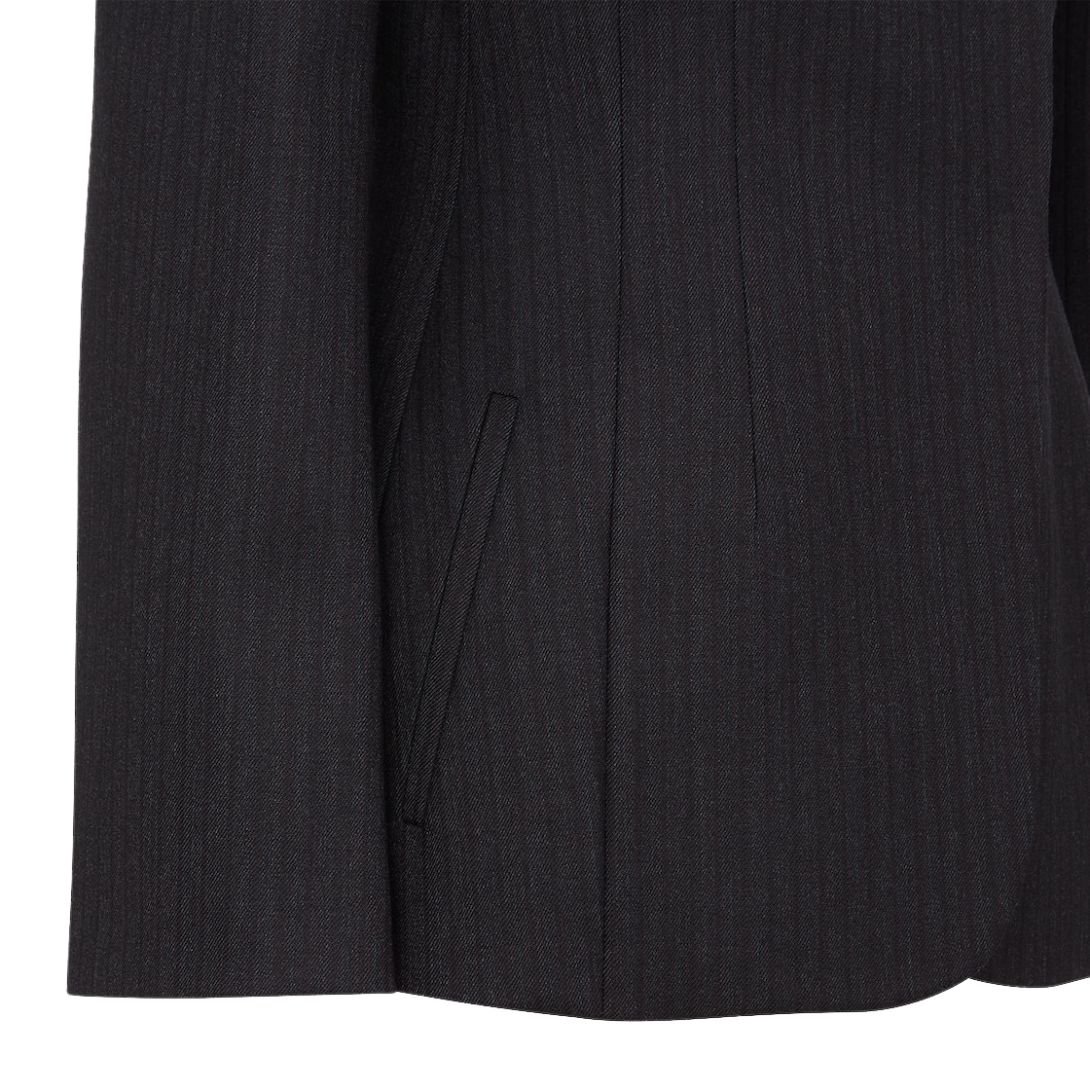 Crafted from black pinstriped wool, this blazer combines classic pinstripes with contemporary tailoring. It includes a breast pocket and welt pockets for functional refinement. The concealed single-breasted closure creates a polished and seamless look. Fully lined for comfort, this blazer is as practical as it is stylish.