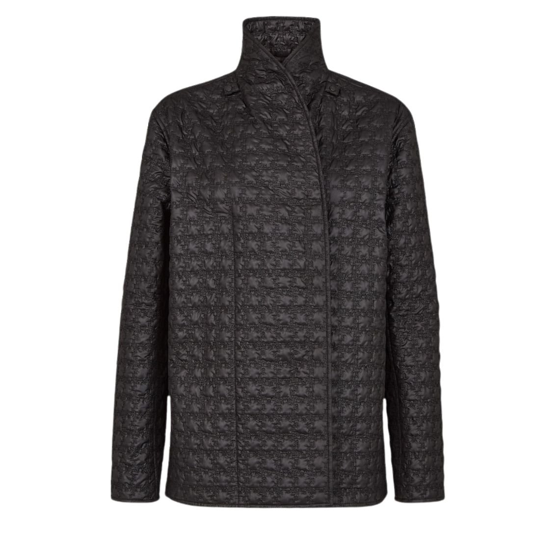 Crafted in Italy from high-quality black nylon, the jacket showcases all-over houndstooth-pattern quilting, providing both warmth and a visually striking texture. The drawstring hood is enhanced with a foulard-like insert, creating a double-layer effect for added style and practicality.