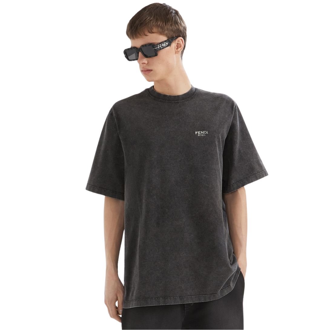 The black washed cotton and metal Fendi Roma lettering make this T-shirt versatile for both casual and slightly elevated outfits. Pair it with denim jeans, cargo pants, or shorts for an effortlessly cool look. For added flair, layer with a leather jacket or denim jacket. This T-shirt works well for street style, casual outings, or even a smart-casual look when styled with the right accessories.