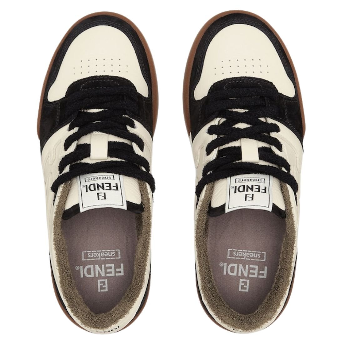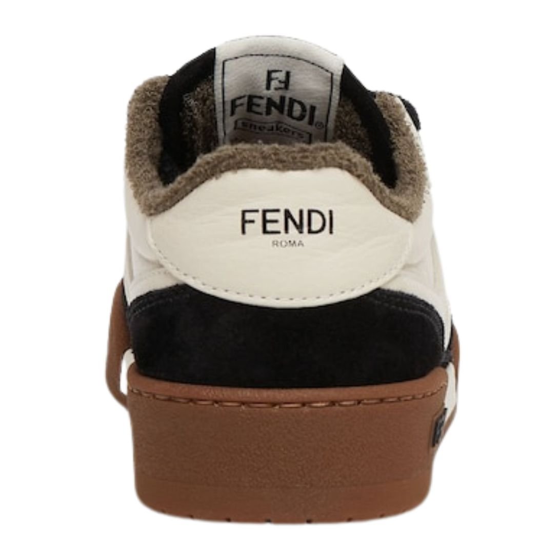 The Fendi Match compact design sneakers offer a blend of retro style and modern sophistication. Crafted in Italy, these sneakers feature a vintage label on the tongue, along with the iconic FF pattern sewn on the side and embossed Fendi lettering on the sole, creating a signature look.