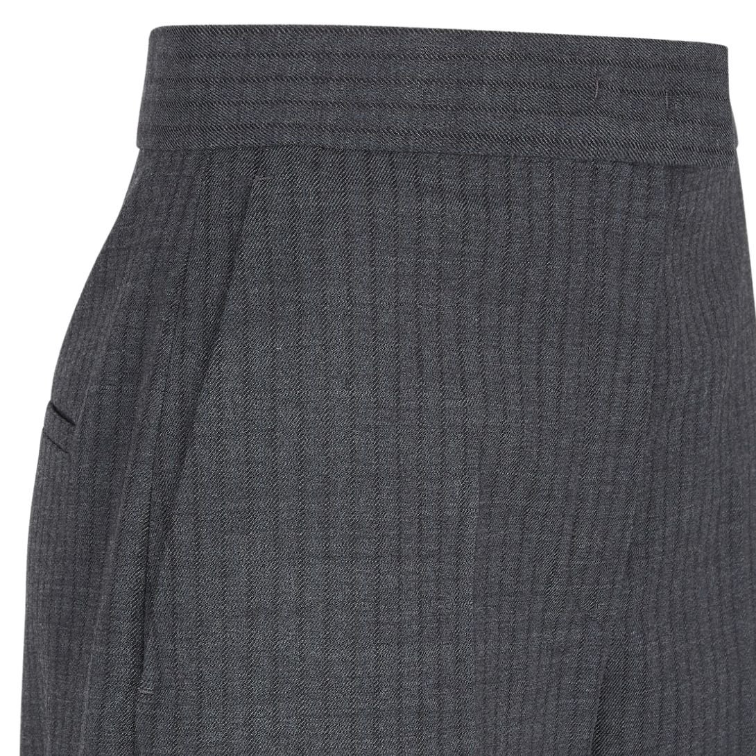 Crafted from a high-quality blend of 97% fleece wool, 2% elastane, and 1% polyester, these pants feature a subtle gray pinstripe pattern. This design adds a touch of sophistication while providing the perfect balance of softness, durability, and stretch for all-day comfort. The 100% silk lining enhances the luxurious feel.