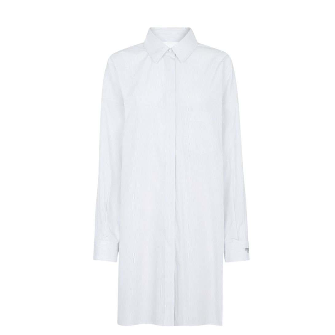 FENDI WHITE STRIPED COTTON DRESS